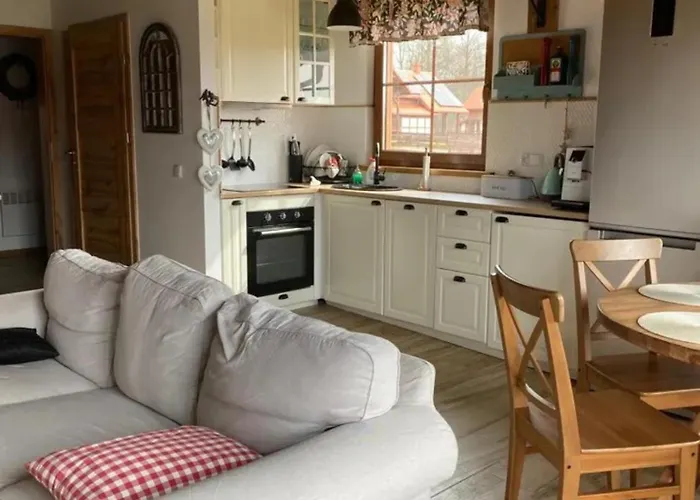 Situated about 10 minutes' drive from Cmentarz parafialny, the 2-bedroom Domek Na Kaszubach 22-2 - Ostoja Bukowo Borowy Mlyn villa provides access to numerous tourist attractions in the area.